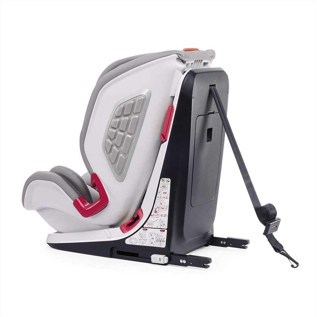 - Grupo 2 y3 Reclinable en 2 posiciones. Se instala mediante los conectores Isofix y Top Tether. Si el coche no dispone de sistema Isofix, la silla de auto podrá instalarse con los cinturones del vehículo de 3 puntos.