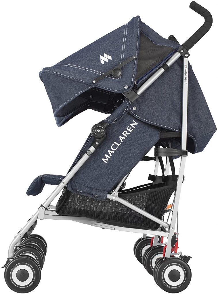 Maclare Twin Triumph es una silla para dos, de plegado tipo paraguas, ligera, deportiva y elegante, perfecta para recados rápidos o viajes de larga distancia.