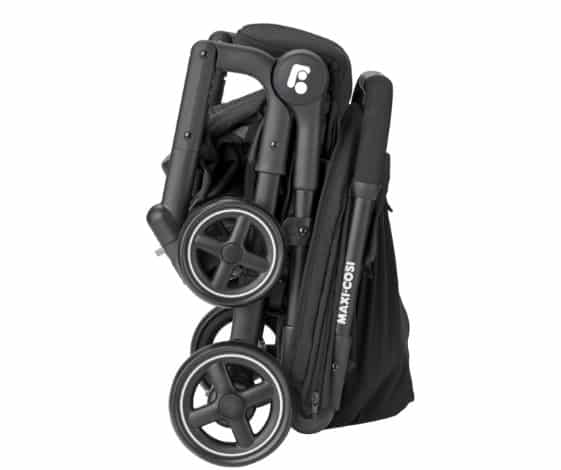 La silla de paseo Maxi Cosi Lara es compacta cuando se pliega y se puede guardar en los lugares más pequeños, incluso en la cabina del avión.